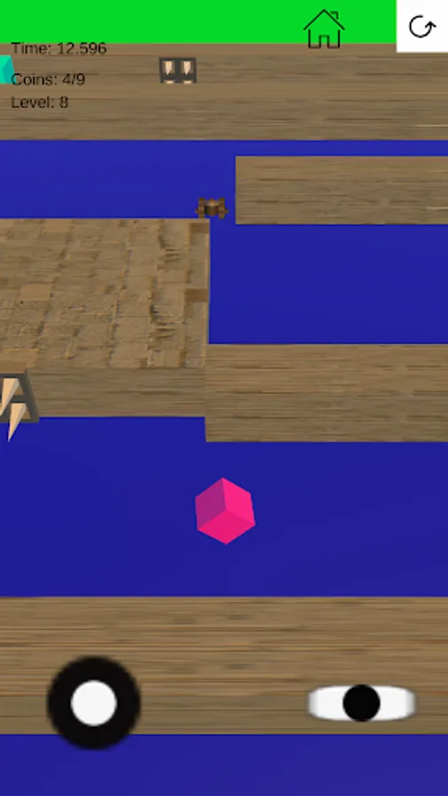 Roll your cube to the light blue box to complete each level. Avoid any enemies and traps along the way.