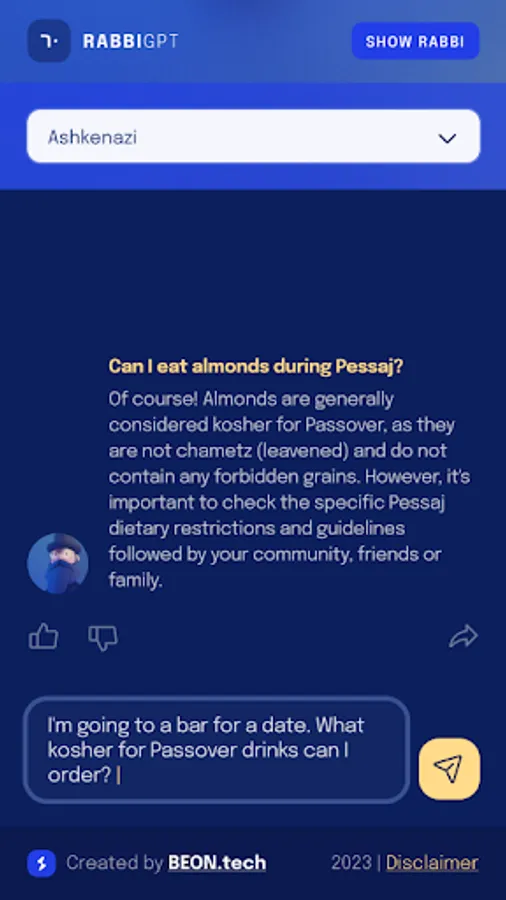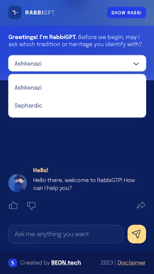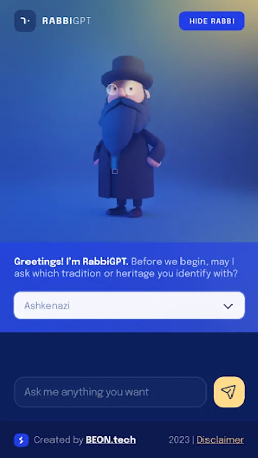 Customizable Experience - Personalize your RabbiGPT journey by tailoring the insights to your specific tradition.