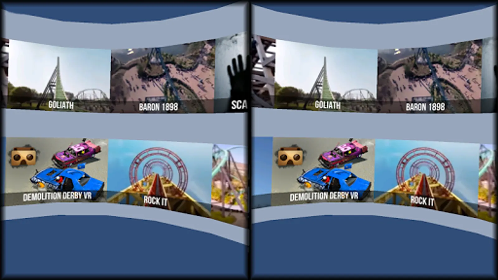 This vr game features multiple Virtual Reality (VR) Roller Coaster rides. You're ultimate theme park VR app is one install click away. You can experience the rollercoaster tracks in VR or touch mode (non-VR).