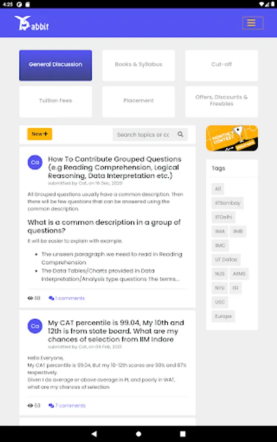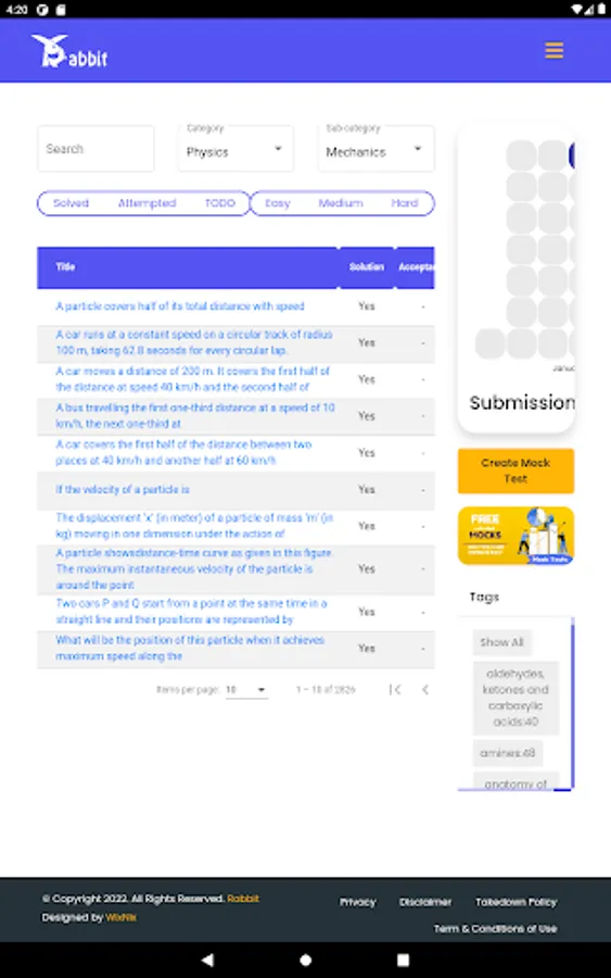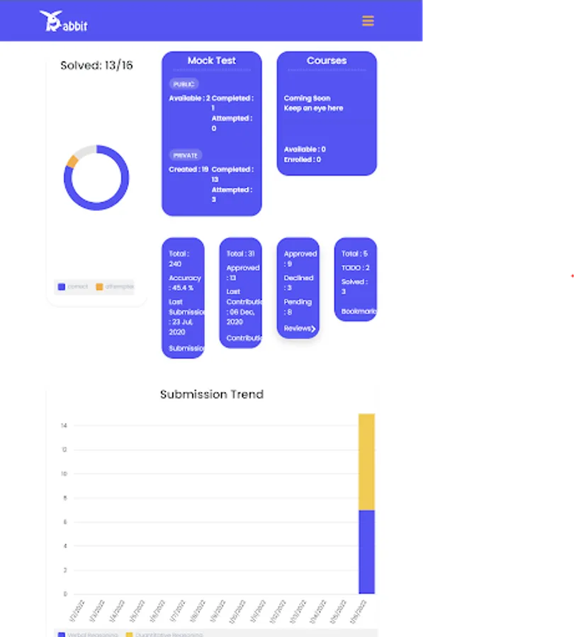 Rabbit has a repository of 30000+ questions and it's continuously growing. Practice hard. Track your progress from the most advanced dashboard. Improve. Repeat.