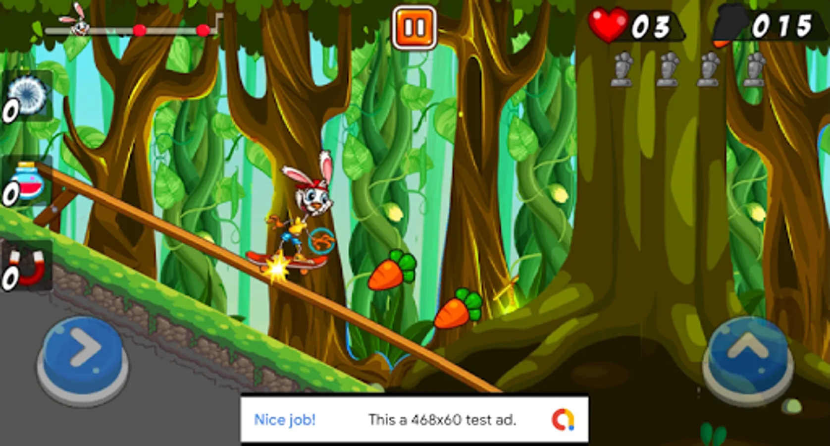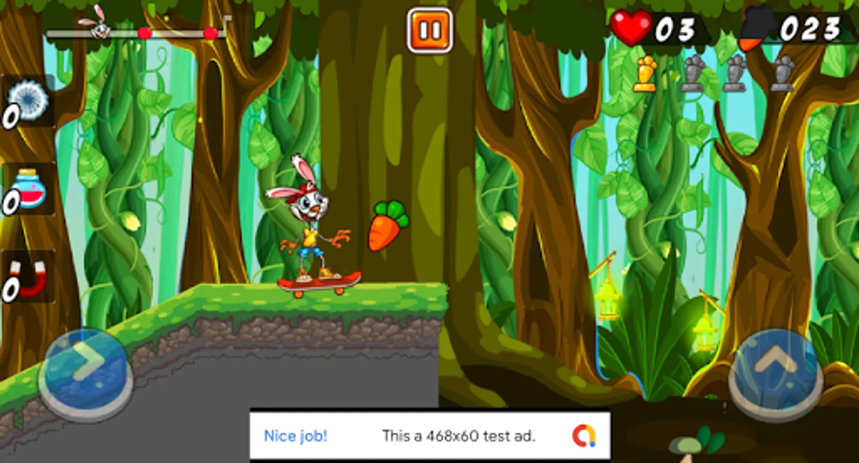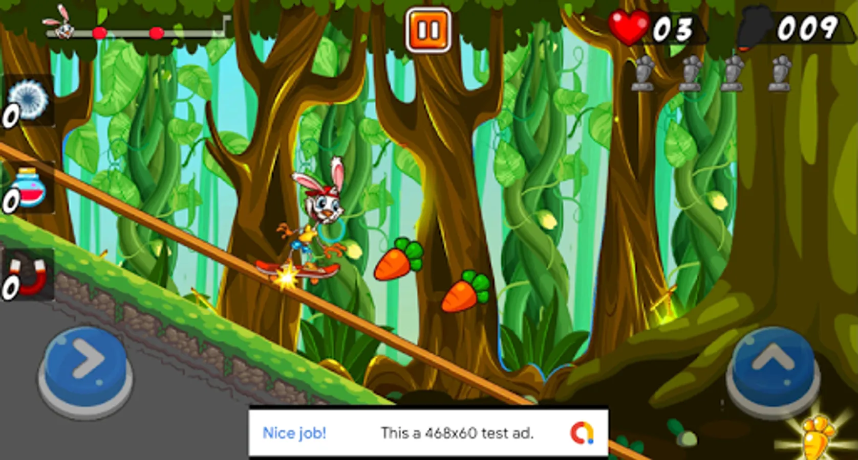 Jump over obstacles, skip over stairs, earn carrots and gold to progress through each stage. Enjoy!