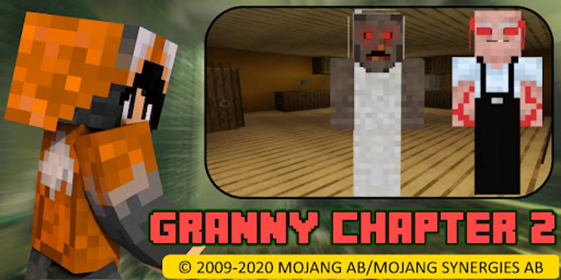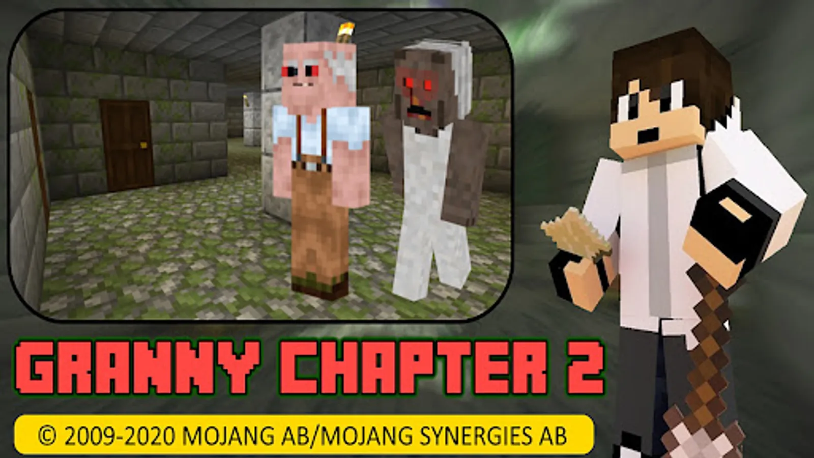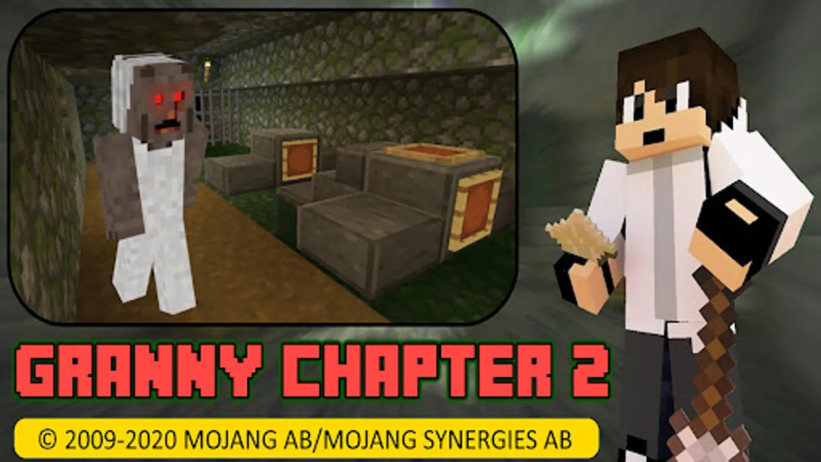 Horror granny 2 is now recreated in MCPE as a horror map. You are locked into a haunted house where inside there is an old lady called granny and an old man called grandpa. The task is to escape the house by finding necessary items in order to leave the house, and you can escape through the main door or by boat. But you only have five days to leave. Good luck.
