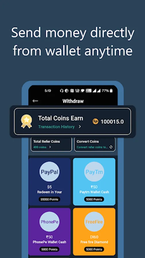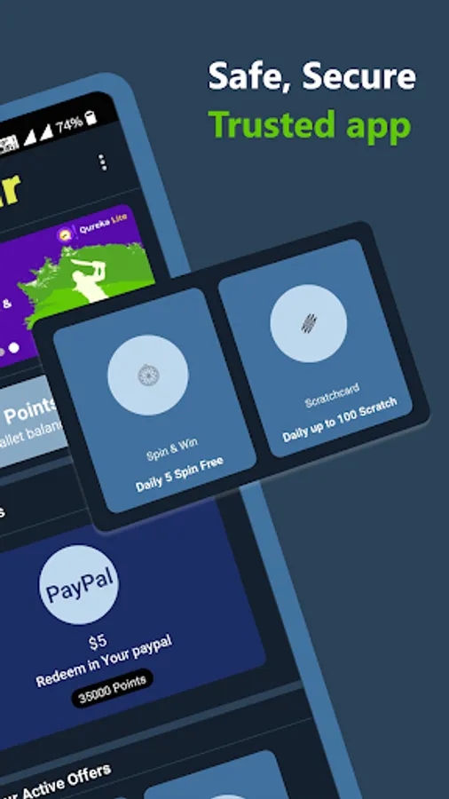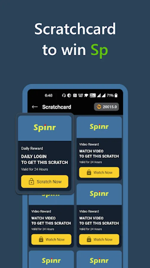 Earn cash rewards by watching video, Playing spin, Scratchcard, etc.