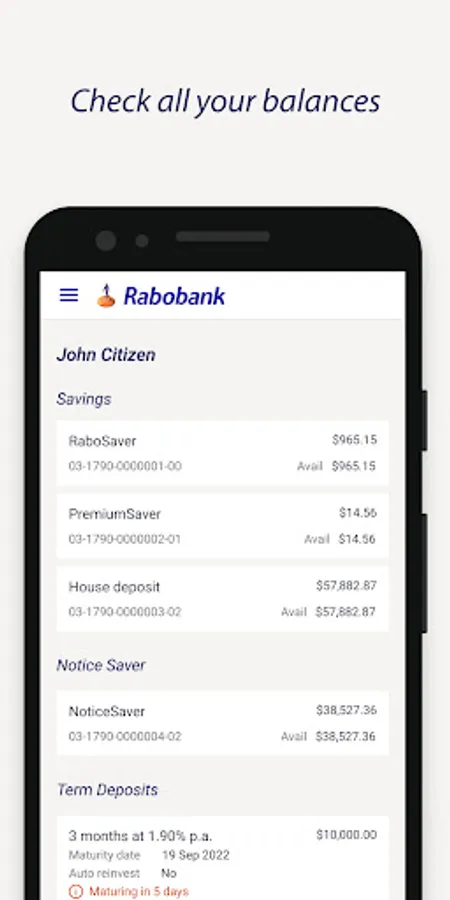 We’ve made it simple to view and manage your Rabobank Online savings anytime, anywhere. Built in security with a simplified 5 digit PIN access to your accounts, no need to carry your Digipass.