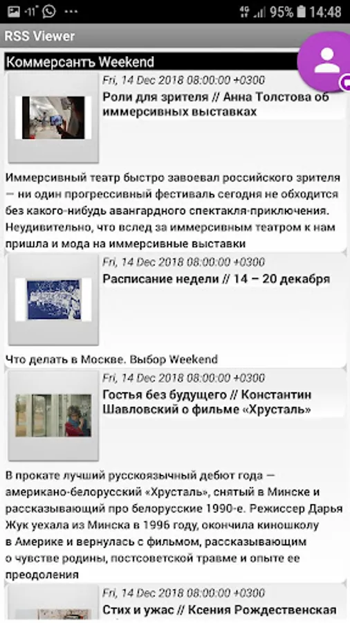 - picture (url of the first enclosure tag with reference value of the link tag; when there is no picture in enclosure will displayed a stub picture)