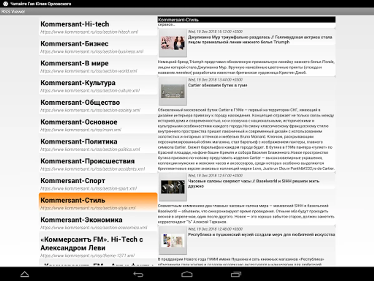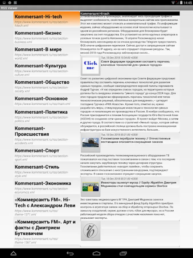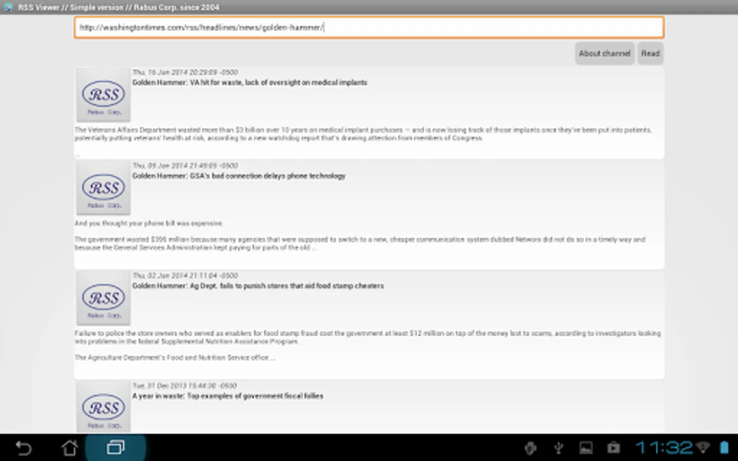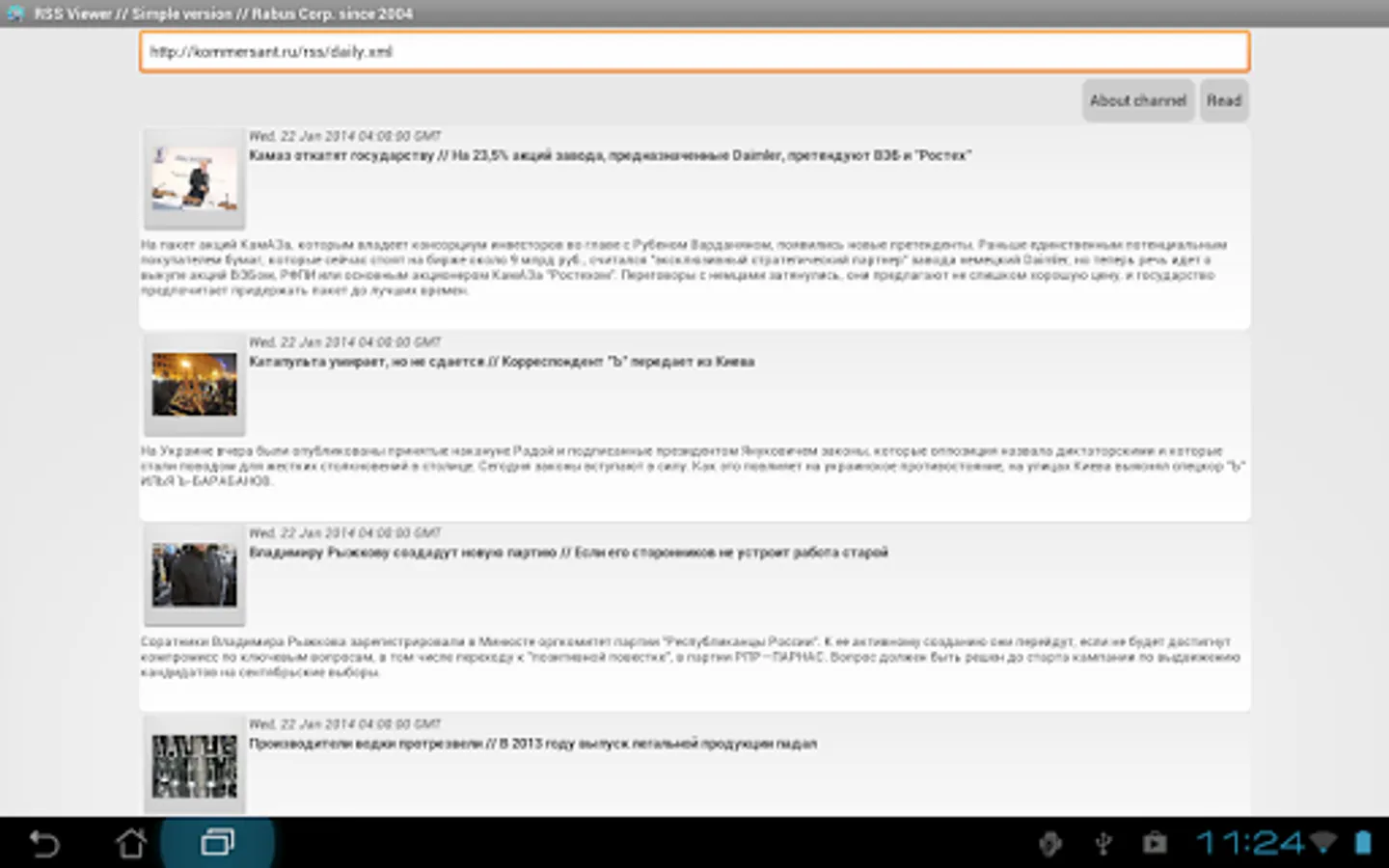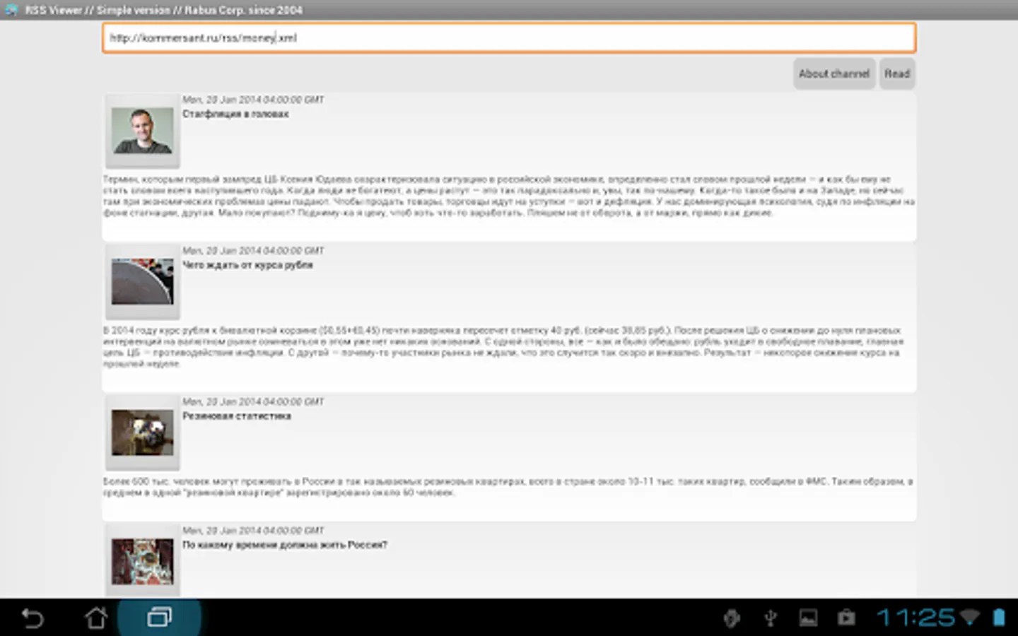 Press "Read" button to start downloading and displaying items of feed in a list.