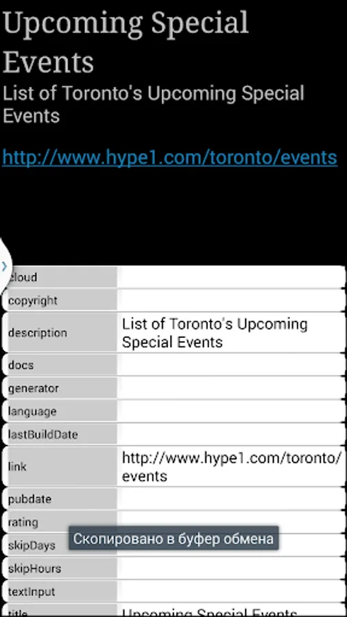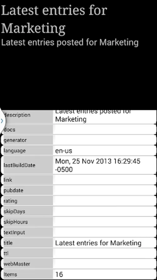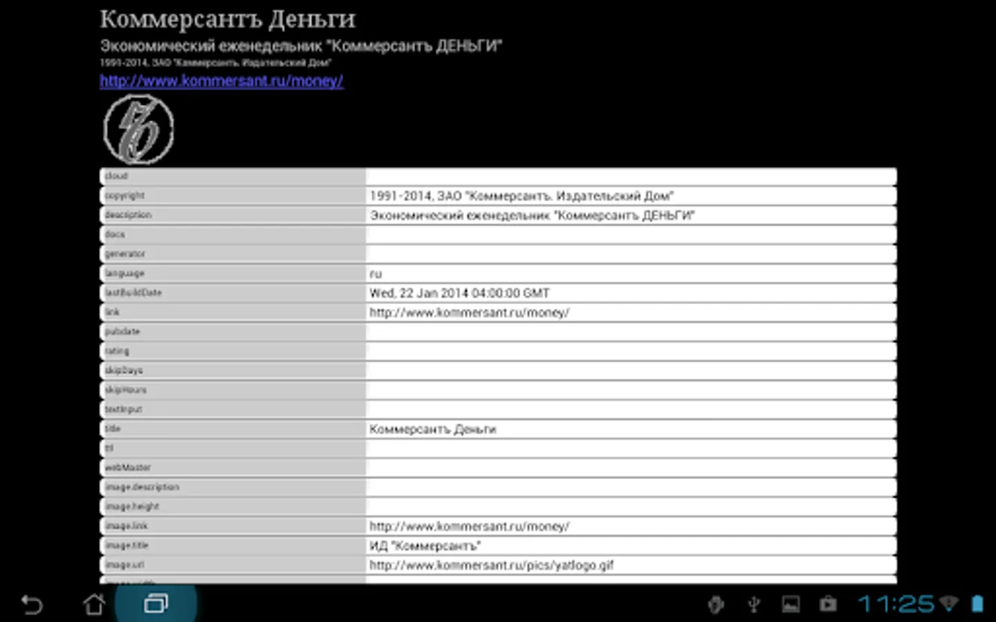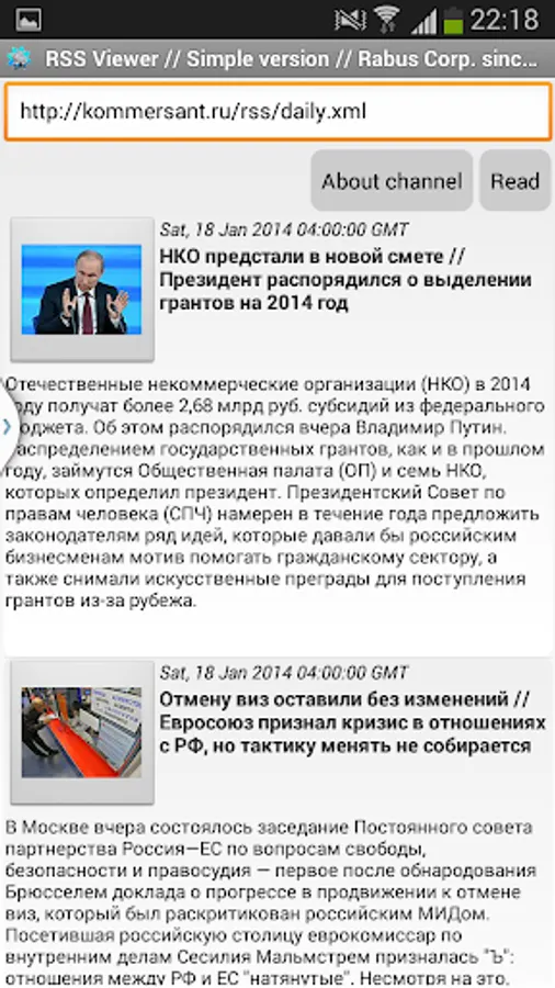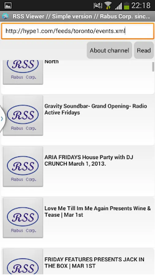 Values of the Channel of the RSS feed are available for viewing by pressing "About channel" button.