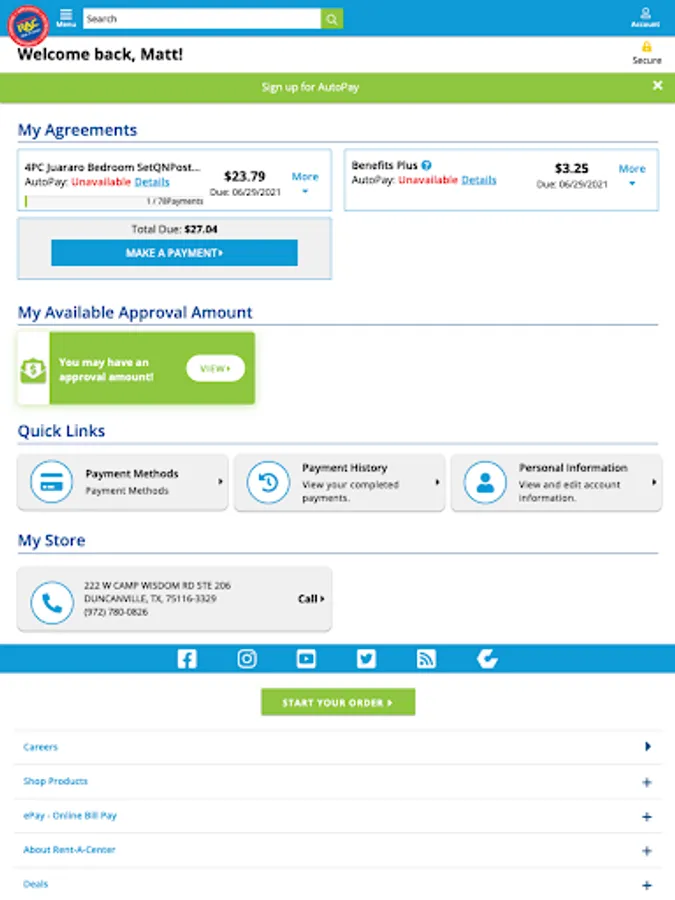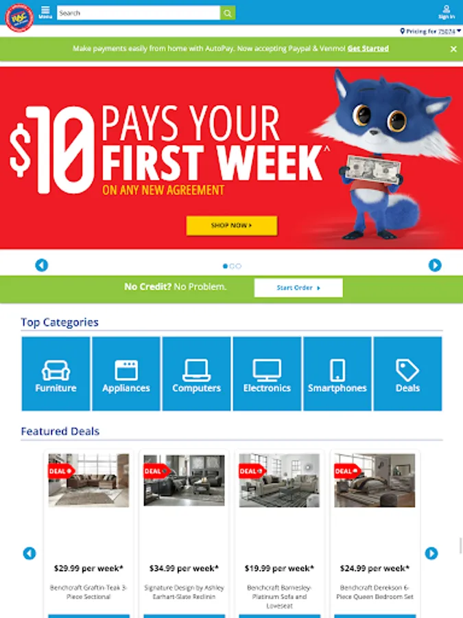 At Rent-A-Center, you can get approved for the best brands in furniture, electronics, appliances, computers and smartphones delivered for free or convenient curbside pick-up. Plus, have quick access to your account, make and track your payments, discover exclusive offers and more - anytime, anywhere.