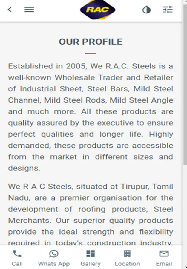 We R A C Steels, situated at Tirupur, Tamil Nadu, are a premier organization for the development of roofing products, Steel Merchants.