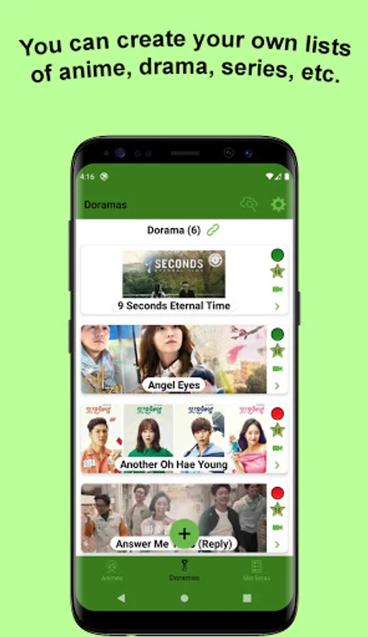 - Create Lists: You can create your own lists of animes, dramas, series, among others. You can also share your lists with your friends and they will be updated automatically when adding new items.