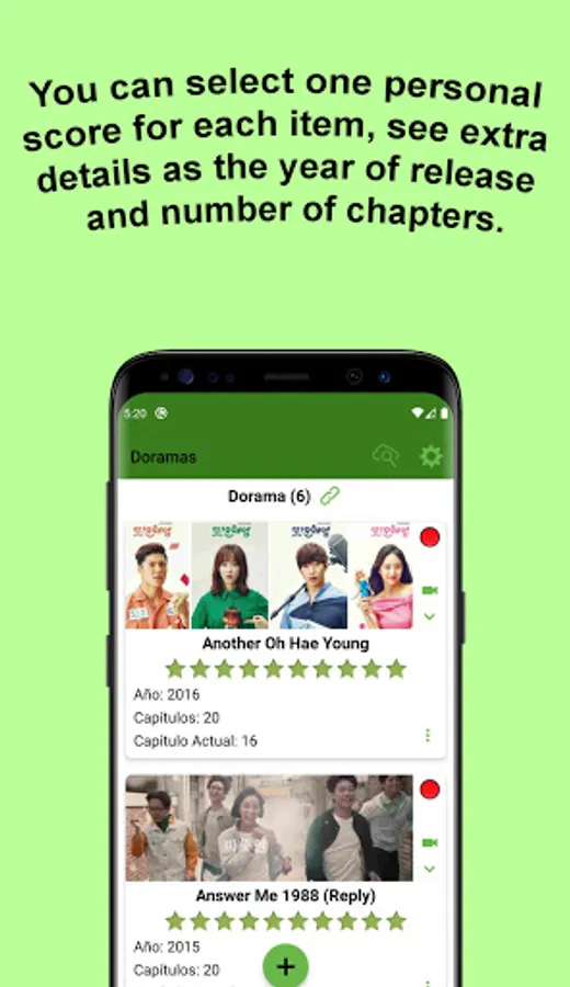 - Personal Score: You can select a personal score for each item, see extra details such as the year of release and number of chapters. Also, you can keep track of how many chapters you have seen on each item.
