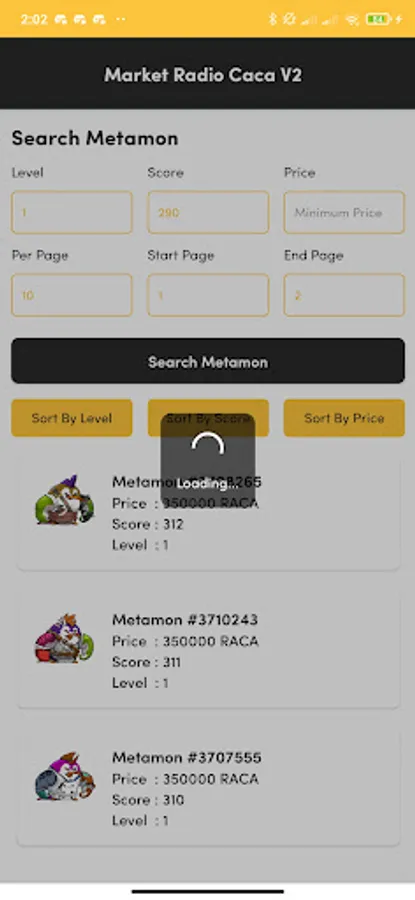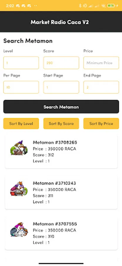 This is application for search metamon by minimum price , minimum level and minimum score , easy and to the moon