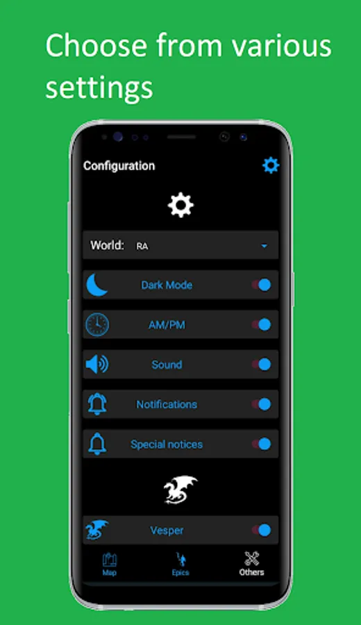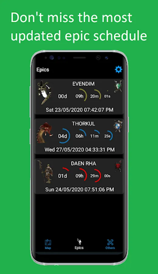 MilitaryForce allows you to see the current status of the Champions of Regnum game map, shows notifications warning when epic will come out (Evendim, Daen Rha, Thorkul). In addition to allowing easier handling of characters that enter at the behest of dragons (Vesper, Alasthor, Tenax).