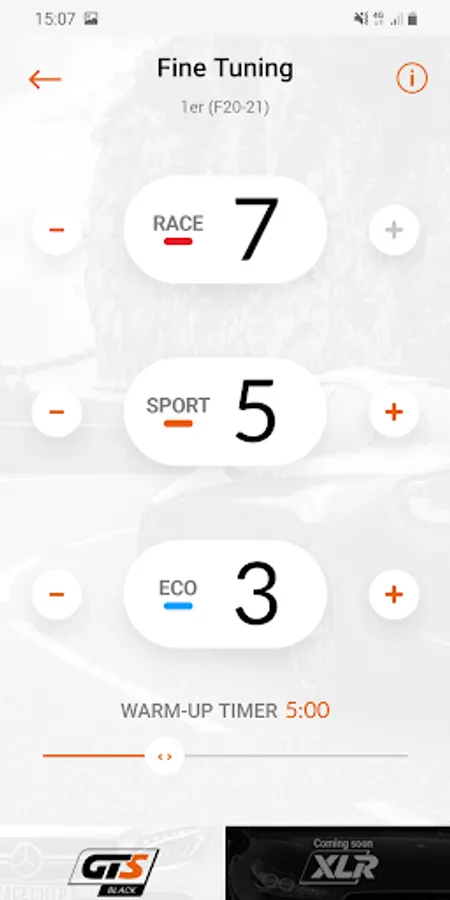 Experience the RaceChip effect in its most innovative form yet – more power for your car with chip tuning and throttle tuning combined. Control chip tuning and throttle tuning with one app and fine tune the respective settings to perfectly match your car's specifics and your personal driving style. Map these settings to three easy to the access driving modes Eco, Sport and Race.