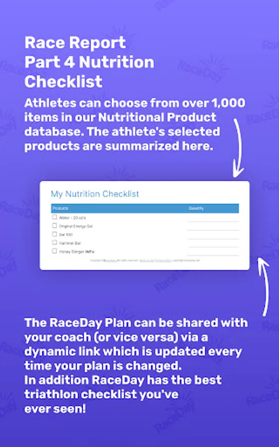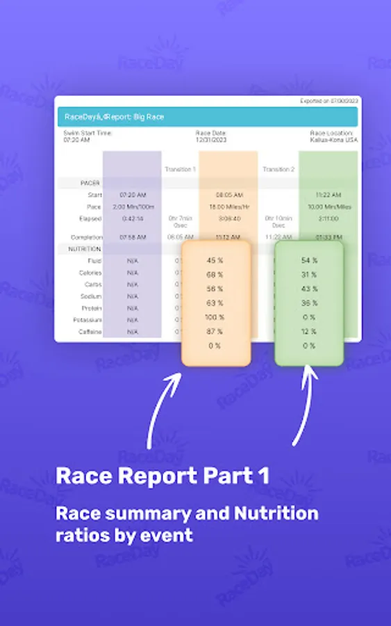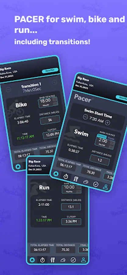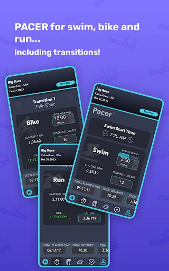 Your upcoming race is more than just an event; it's a culmination of your dedication and hard work. As the only Triathlon Race Planning app incorporating key data such as pace, nutrition and weather, RaceDay ensures that all your efforts pay off. By harnessing the power of technology and expert planning that you control, RaceDay is your secret weapon for achieving your Personal Best.