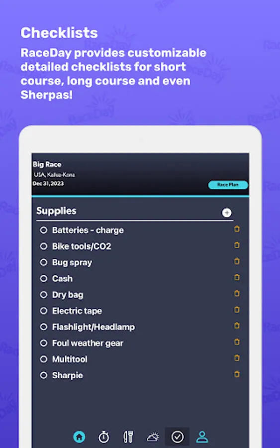 RaceDay is a valuable tool that stands alone as the only app that allows you to create your own race strategy utilizing pace, nutrition, hydration and weather. You've spent time, effort and energy into preparing for your triathlon and now it's time to ensure your achieve your personal best by using RaceDay Triathlon. Reap the rewards. Make your hard work count. Perform at your best by using RaceDay Triathlon and being prepared like never before.