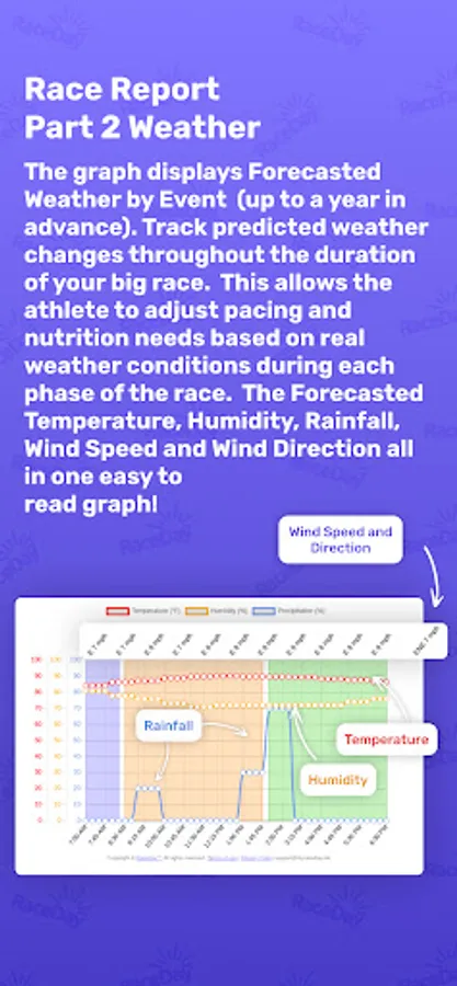 WEATHER INTEGRATION: Stay ahead of the game with real-time, forecasted weather report for your race location.