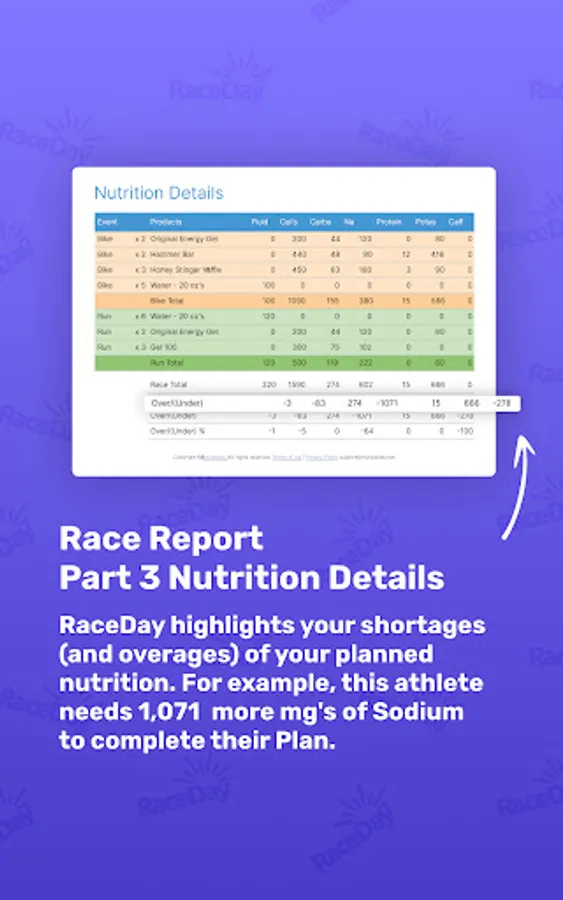 We understand that Each race is unique, and so are you! RaceDay allows you to optimize your race plan by creating multiple strategies. Adjust the pace numbers, fueling plan and nutritional inputs to match the forecasted weather conditions. With this level of customization, you can adapt your plan to be ready for any challenge that comes your way.