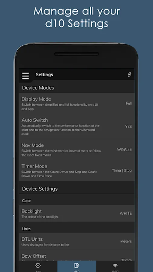 # Navigation and control of d10 settings from your phone or smart device