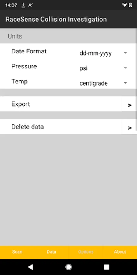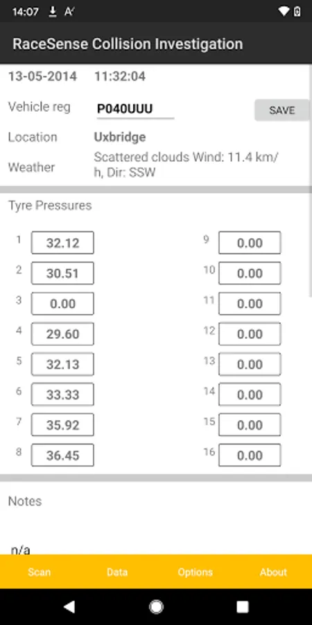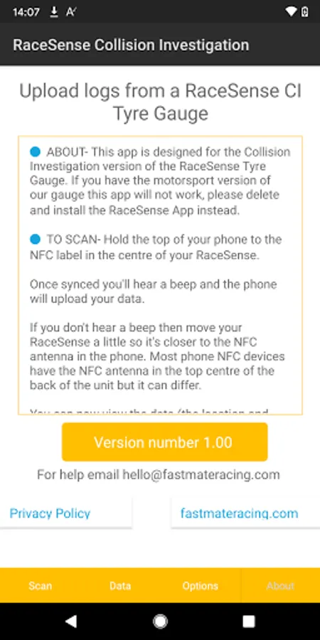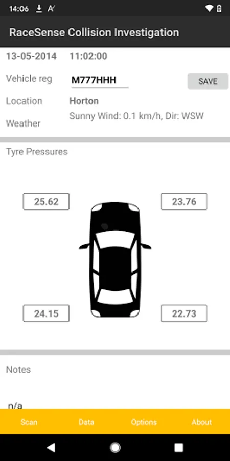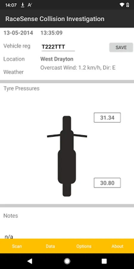 Sync the data from the RaceSenseCI gauge to this app at a tap by NFC. Automatically adds location and weather conditions, add vehicle registration number, notes and email reports.