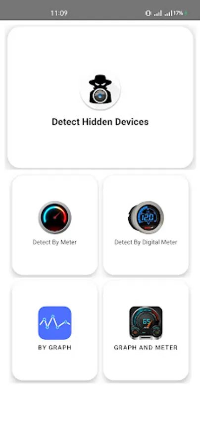 Spy devices detector and & hidden camera finder and spy camera detector app works best detecting detective camera and metal cameras up to 15 cm away. and working best detecting ferromagnetic materials such as hidden camera, speaker and other so many spy devices.
