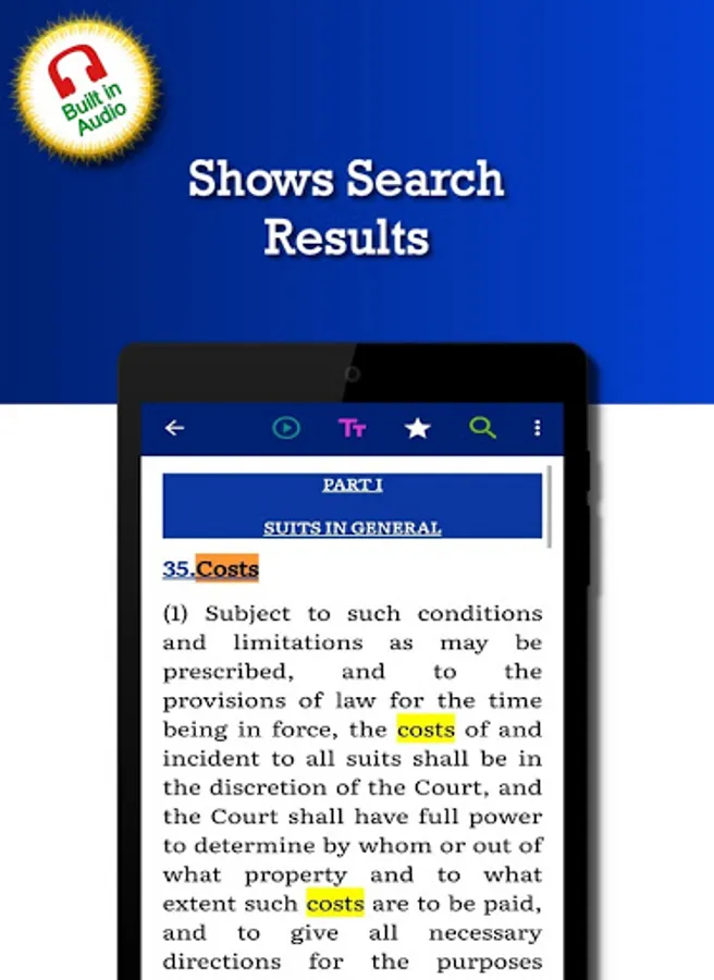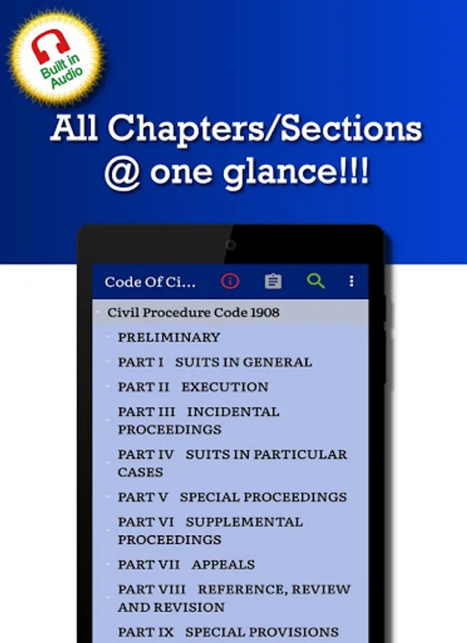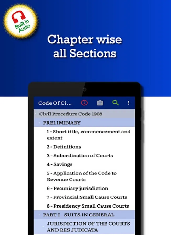 This ‘Code of Civil Procedure 1908 (CPC)' app is very useful for Law professionals (Lawyer, Attorney ... and others alike.), Teachers, Students, anyone interested in learning this Law of India.