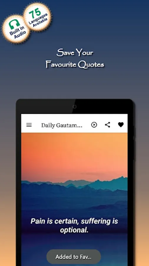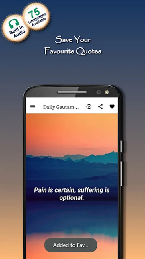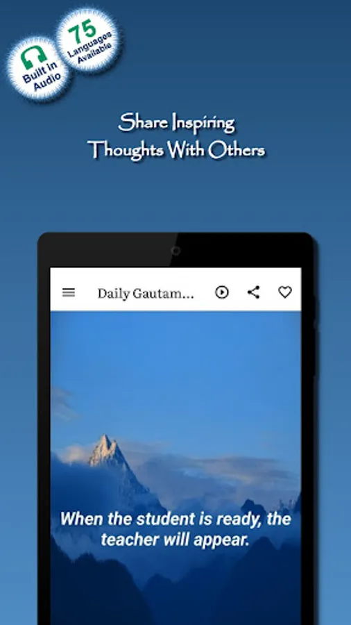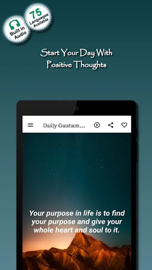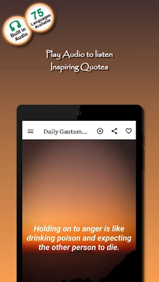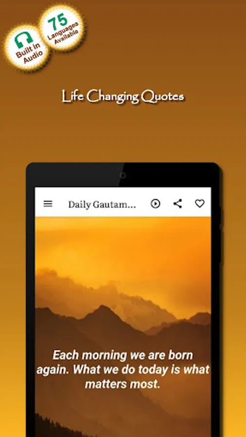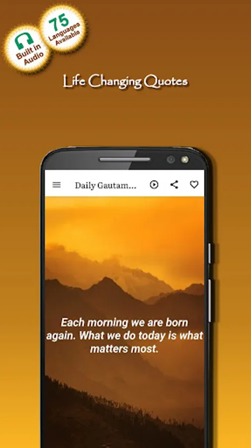 “Daily Gautama Buddha Quotes” is the Best and Unique collection of inspirational quotes / thoughts of Gautama Buddha. It is a completely Offline and Free App. All thoughts are available in 75 Languages with Audio, so you can select your own Language.