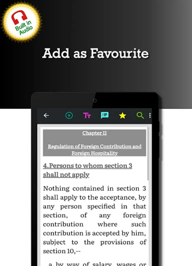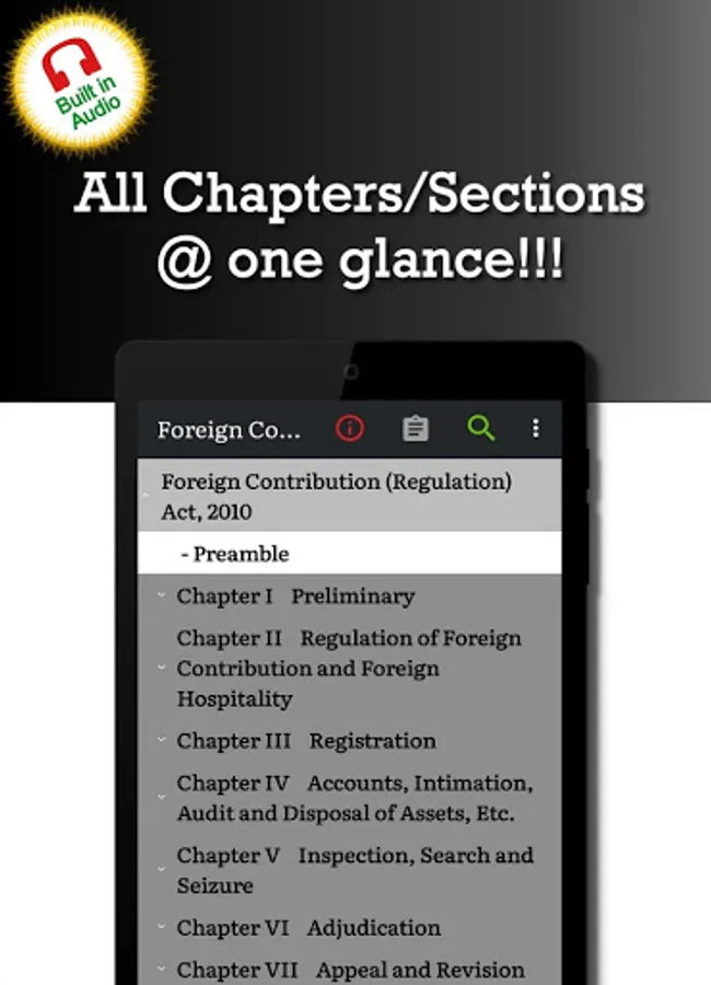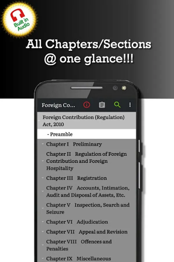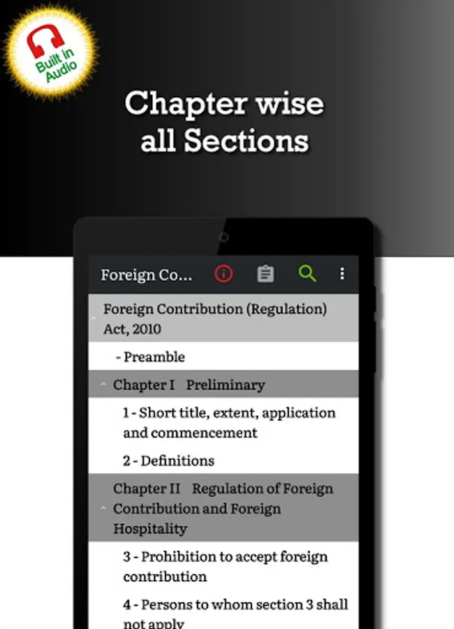 This ‘Foreign Contribution Regulation Act 2010 (FCRA)' app is very useful for Law professionals (Lawyer, Attorney ... and others alike.), Teachers, Students, anyone interested in learning this Law of India.