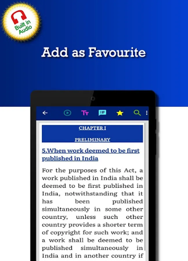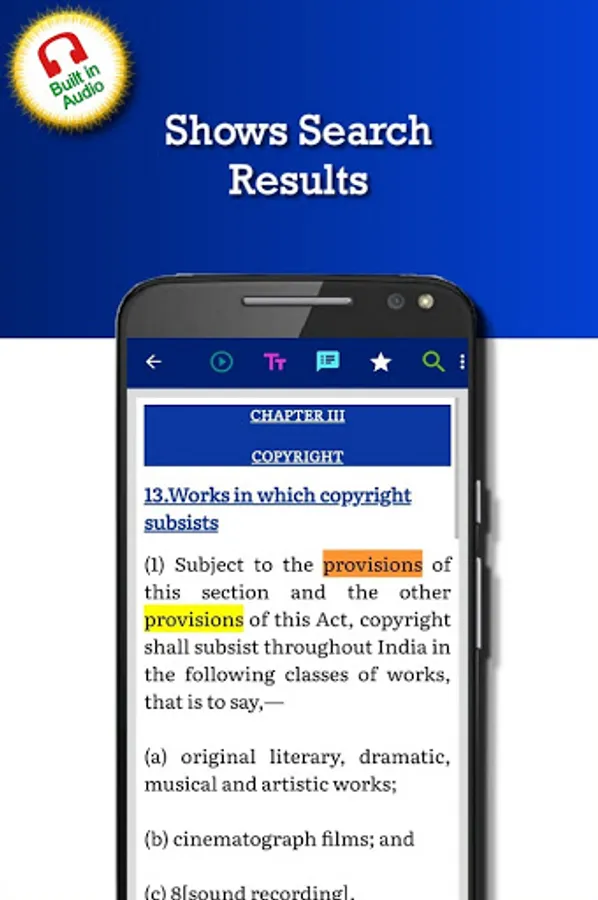 This Copyright Act 1957 app is very useful for Law professionals (Lawyer, Attorney ... and others alike.), Teachers, Students, anyone interested in learning this Law of India.