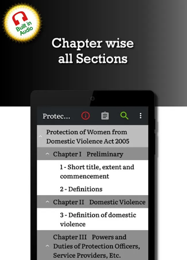 This ‘Protection of Women from Domestic Violence Act 2005' app is very useful for Law professionals (Lawyer, Attorney ... and others alike.), Teachers, Students, anyone interested in learning this Law of India.