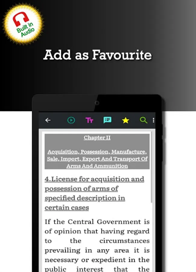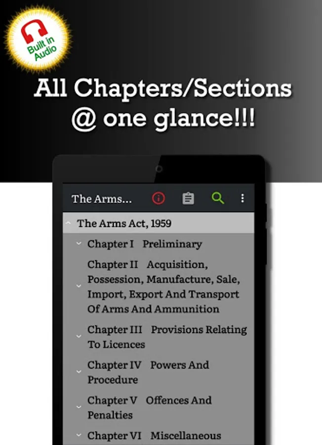 This ‘Arms Act 1959' app is very useful for Law professionals (Lawyer, Attorney ... and others alike.), Teachers, Students, anyone interested in learning this Law of India.