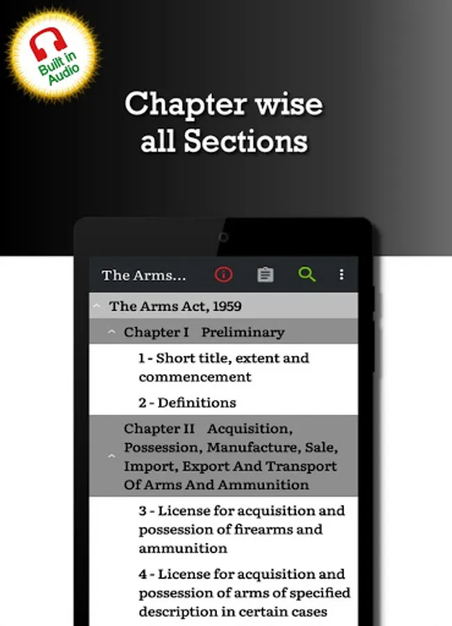 ‘Arms Act 1959’ is the Best Arms Act learning App with latest Amendments. It is a free and offline app providing detail Section-wise and Chapter-wise Legal Information of Arms Act of India.