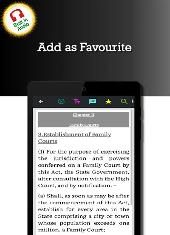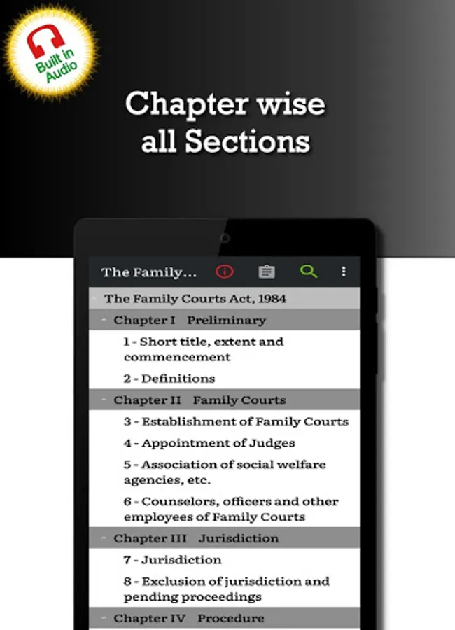 This ‘Family Courts Act 1984' app is very useful for Law professionals (Lawyer, Attorney ... and others alike.), Teachers, Students, anyone interested in learning this Law of India.
