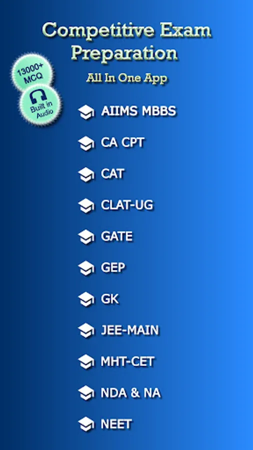 ‘Competitive Exam Preparation’ is a one stop destination for multiple competitive exams in India. It is a fantastic Entrance Exam Preparation app for AIIMS MBBS, CAT, CLAT-UG, CA CPT, GK, GEP, GATE, JEE-Main, MHT-CET, NDA & NA and NEET exam.