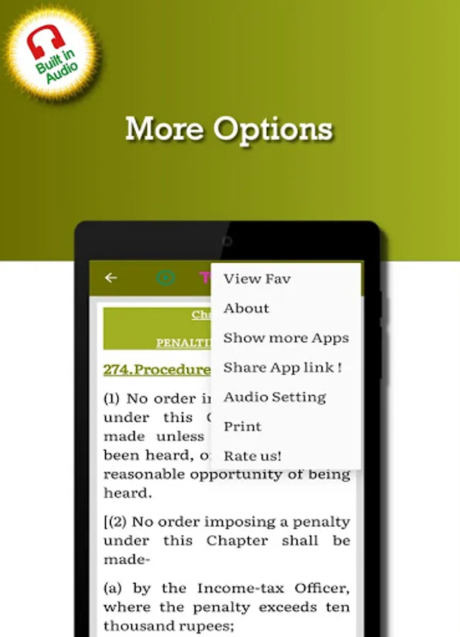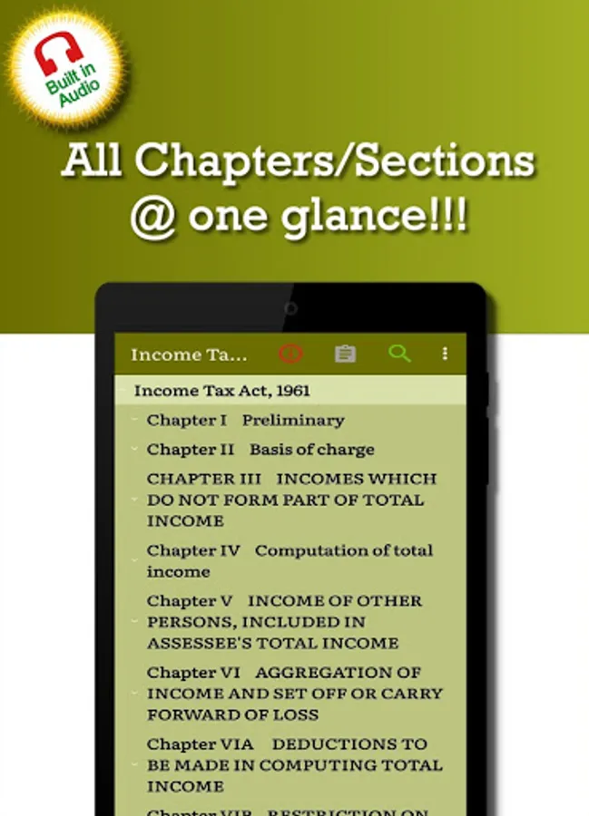 This ‘Income Tax Act 1961' app is very useful for Law professionals (Lawyer, Attorney, CA, CS ....and others alike.), Teachers, Students, anyone interested in learning this Law of India.