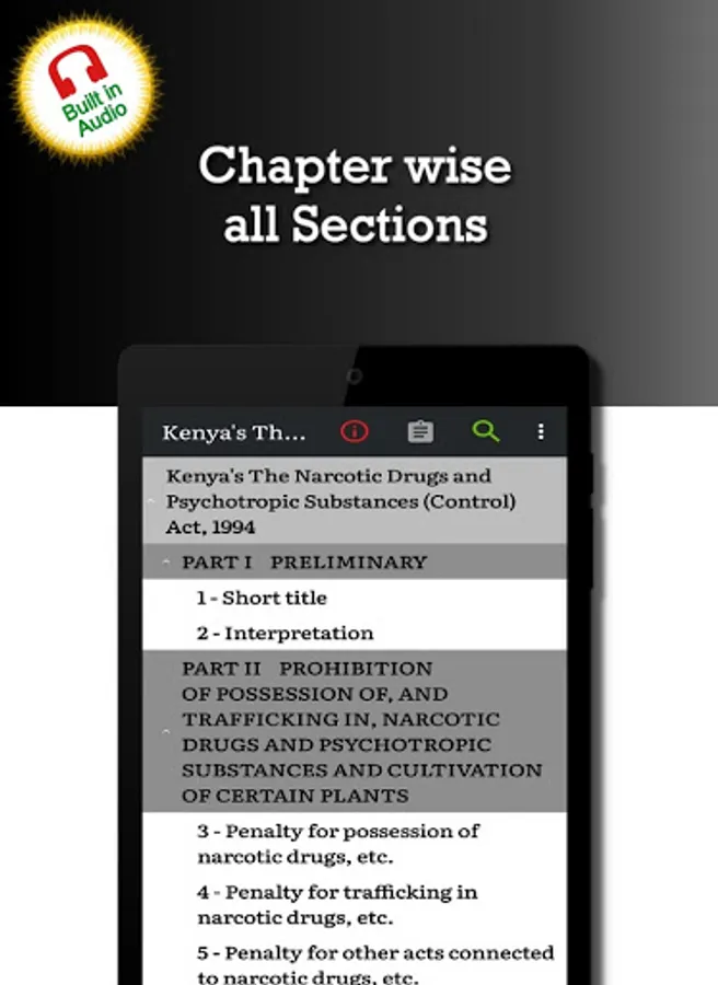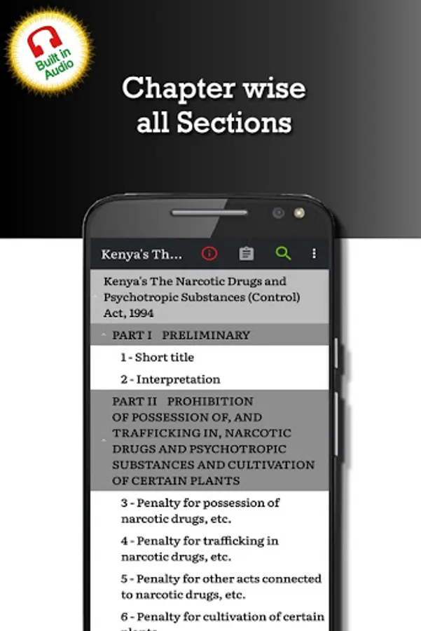 ‘Narcotic Drugs (Control) Act 1994 - NDPS (Kenya)’ is the Best Narcotic Drugs and Psychotropic Substances (Control) Act learning App with latest Amendments. It is a free and offline app providing detail Section-wise and Chapter-wise Legal Information of NDPS Act of Kenya.