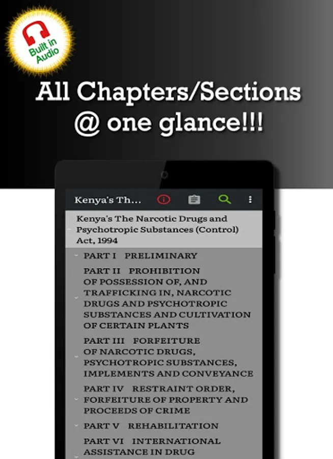 It is a bare act app that provides easy access to the important Kenyan Legal information.