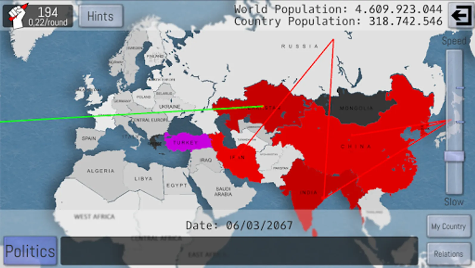 In this simulation it's all about global conflicts. Try to stay alive and play enemy countries against each other. Decide the right politics at the right time and your country will prevail.