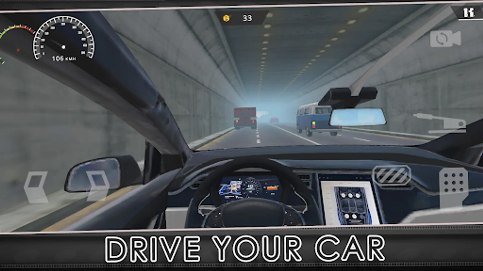 Car Simulator - Racing in Car POV - a new realistic car driving simulator on the highway . Ride inside the car on busy roads and the track is filled with high-speed cars . The best car simulator game only cool racers can perfectly dodge all the vehicles and sports cars on the road and park at the end of the race like a driving school . Drive at extreme speed on the highway , overtake supercars inside the car and drift to earn money and upgrade your racing in car car simulator .