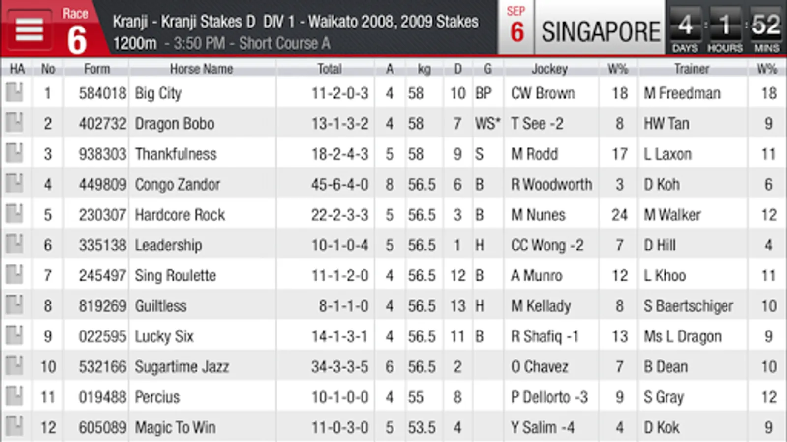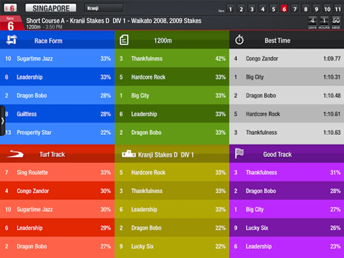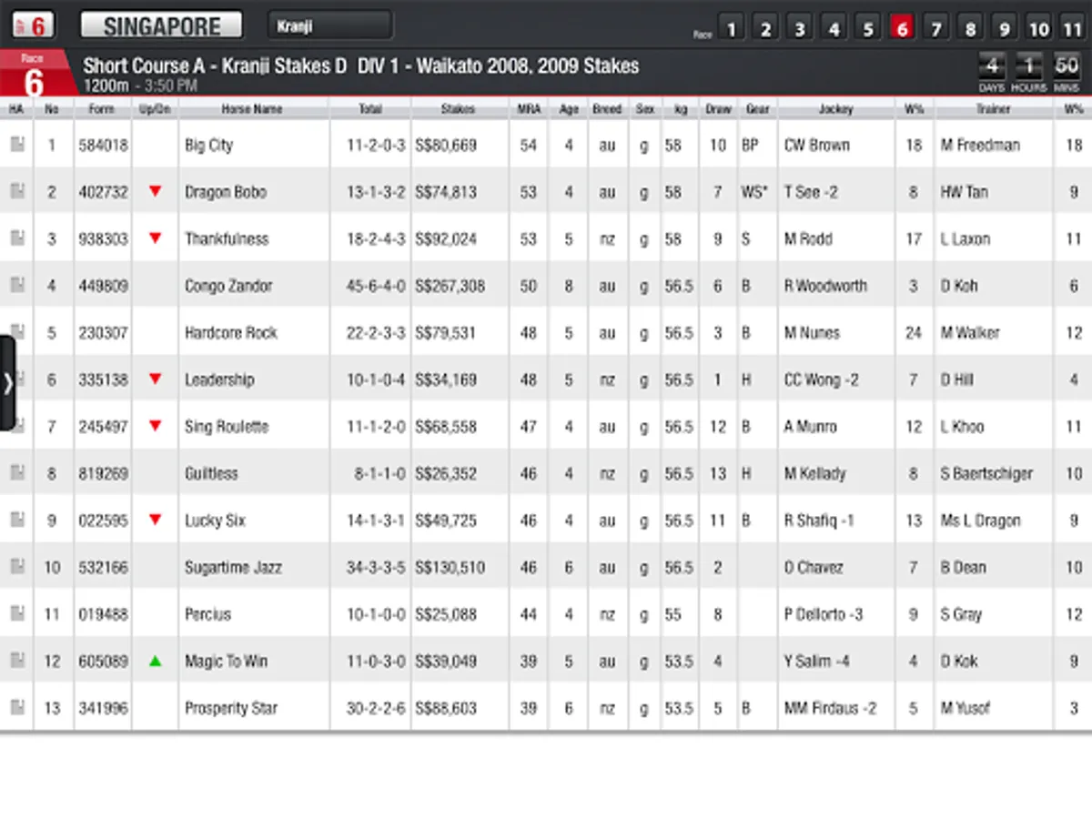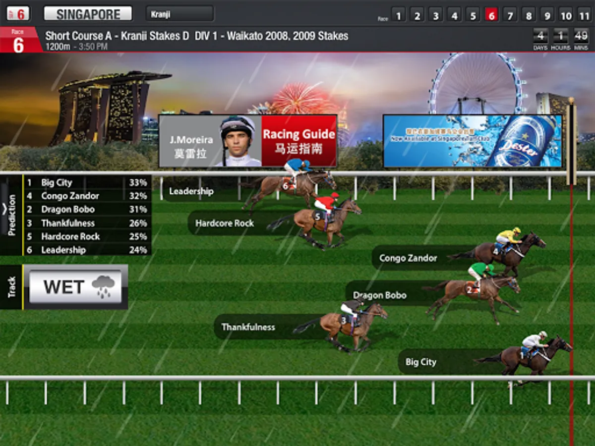 4. Racing information for Singapore, Malaysia, Hong Kong and South Africa.