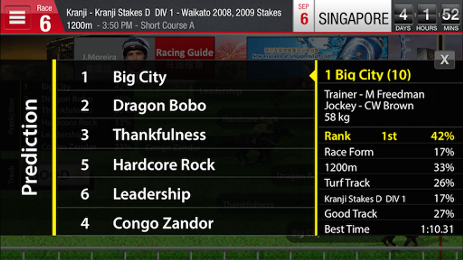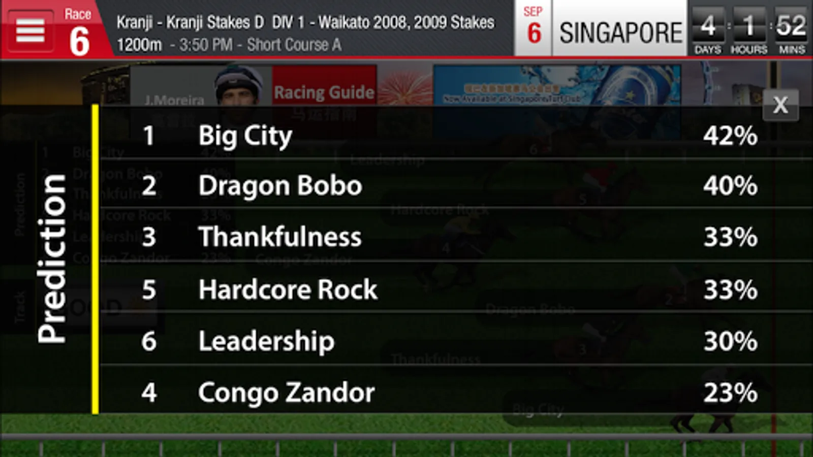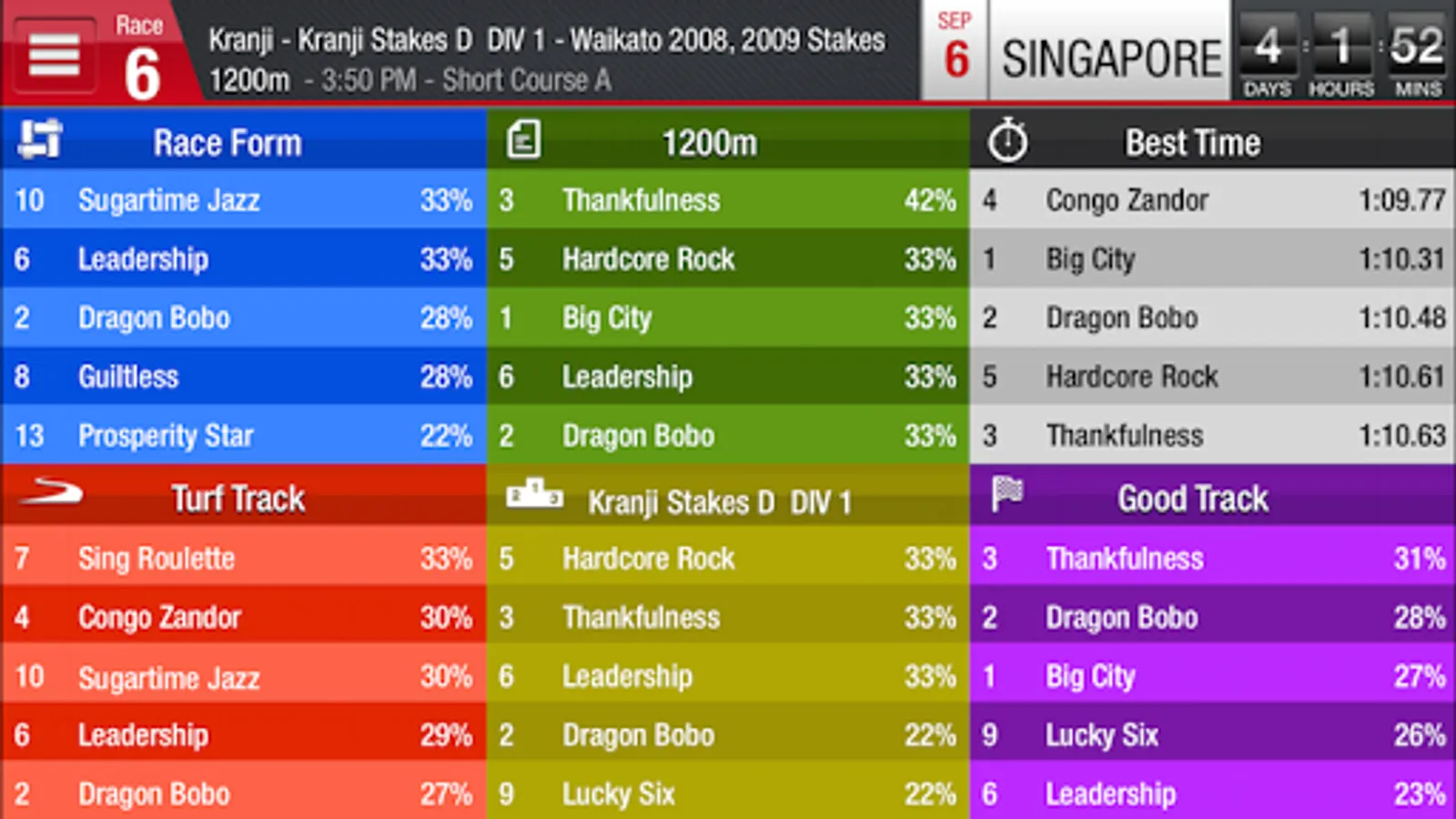 4. Racing information for Singapore, Malaysia, Hong Kong and South Africa.