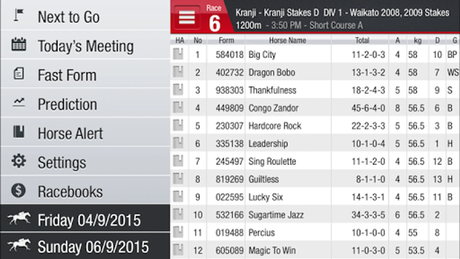 5. Horse Alert which allows you to set a timer alert to remind you on race day that the horses you are watching is about to run