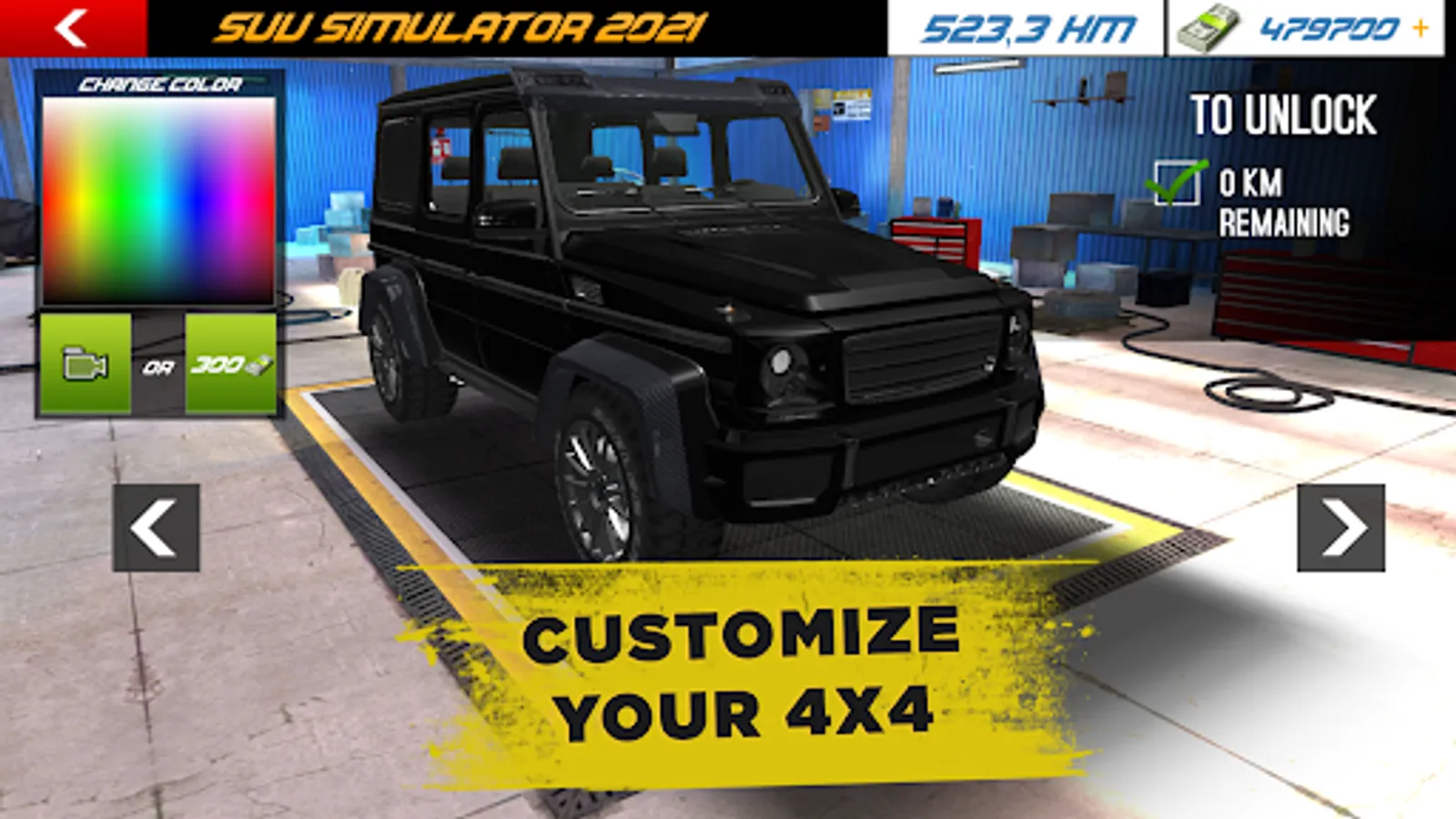 * Paint your car with the best colors and vinyls to have the most incredible 4x4 and suv cars in the world