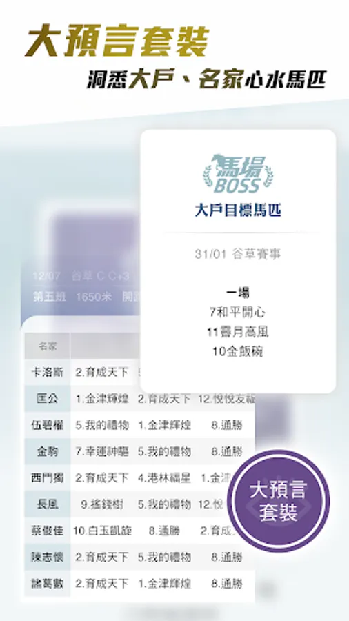 Racecourse Boss provides users with horse racing information, allowing you to keep abreast of the hottest news inside and outside the racecourse. Racecourse Boss uses accurate data to predict the chances of horses winning in each race, and cooperates with personal experience to help you strategize. Users can choose the secretary of the racecourse Boss according to their personal preferences to grasp the latest information about the racecourse.