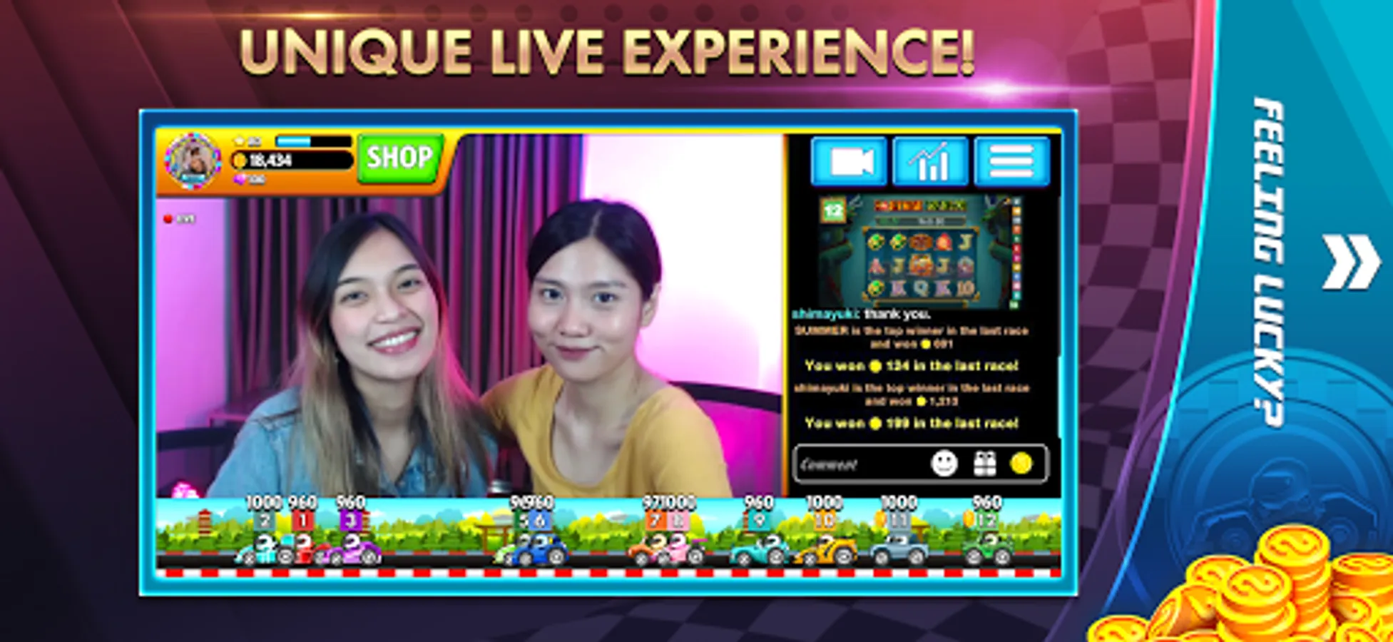Come in and join the 🏁races! Choose between 12 machines, place your bets on the machine of your choice, and see who comes out on top LIVE! Immerse yourself in the excitement of cheering on your machine to runaway with the biggest balance at the end of the race!