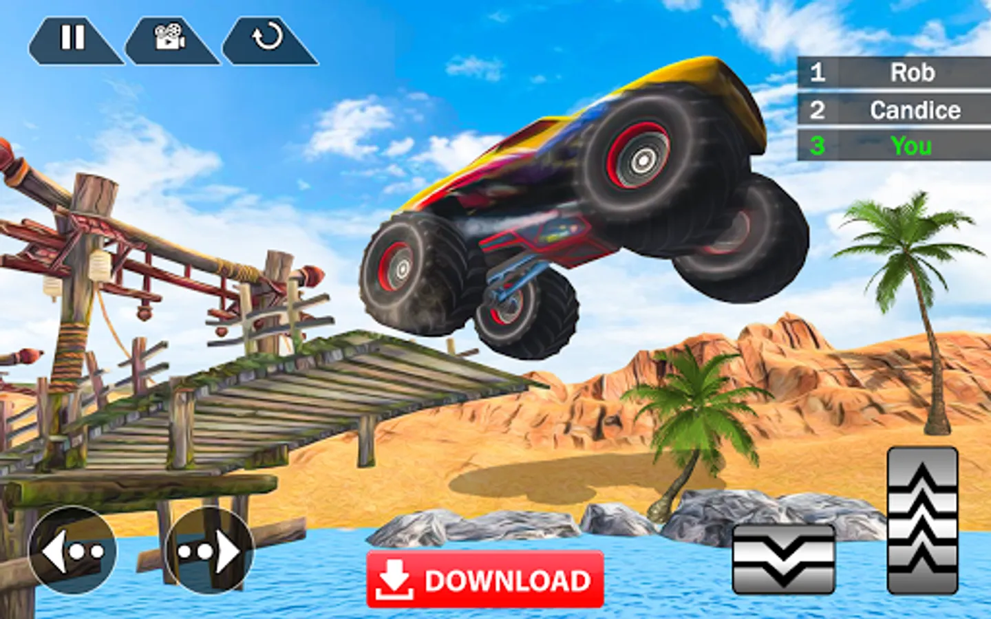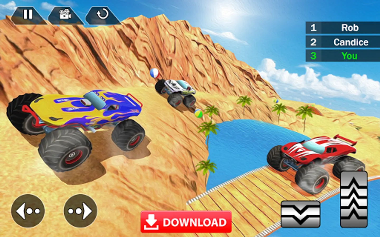 Mega Monster Truck performs 98% impossible speed difficult stunt against other truck legends. Super monster truck offers you thrilling jumping games stunts and HD graphics with top stunts. Enjoy derby tracks truck stunts and race between a monster truck and monster trucks and monster tankers so drive carefully.