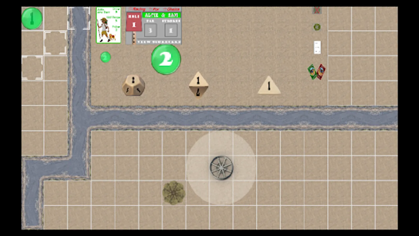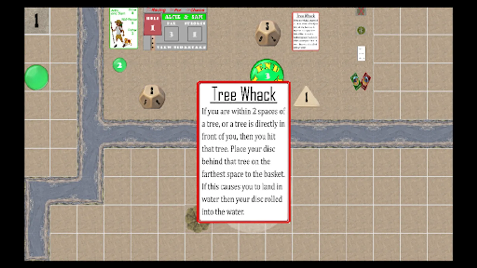 Use a Driver (12 sided dice) a Mid-Range (8 sided dice), and a Putter (4 sided dice) to move around the board, avoid hazards, and make it into each hole's basket in the least amount of strokes possible.