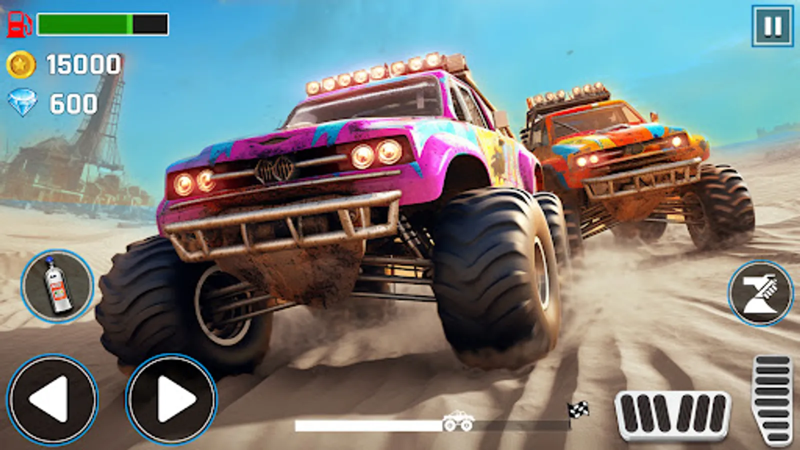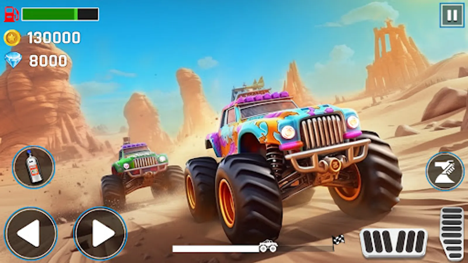 Mini Monster Truck Racing Game is a climb racing game that challenges you to travel across the deadly desert track. Race into action as you select your favourite Racing cars and Mini Monster Trucks to climb the highest hill and dirt tracks. In Monster Truck Racing Game: GT online games drive 4x4 impossible monster truck simulator on uphill desert trach as crazy racing games and gt racing games and car racing games driver. Maximize your vehicles potential by upgrading different aspects. We wish we could see you at the finish line but the car racing tracks are very tricky and impossible to drive. Are you up for the challenge to prove yourself as a pro mini monster truck driver?