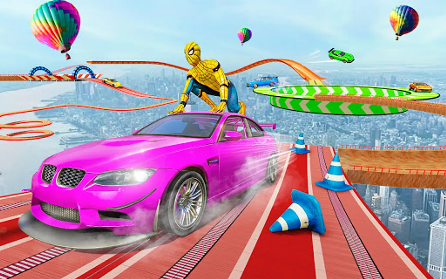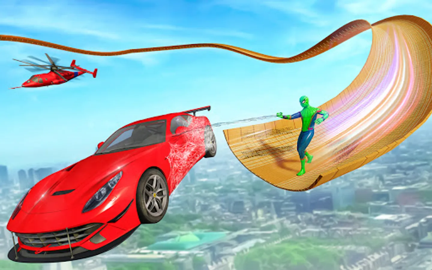 Drive your rocky superhero real car up above the sky in flying stunts game. Start real racing as a spider superhero car tricky stunt driver in mega ramp car jumping 3d. Do extreme car flips in the air on high mega ramps in pro car superhero shooting fps games. Choose your tricky stunt car spider fighter and then select modes of parking challenges, Mega ramp car flying, and car racing fever in spider games. Take this challenge to an extreme high and win hero shooter games. Flipping mega ramps impossible stunts in pro car real flying games. Enjoy extreme real car 3d stunt races for boys, girls which are designed by professionals. Jumping in spider stunt racing car games is as realistic as it should be to provide thrilling and amazing visuals in stunt hero games. Learn extreme driving in classical tricky stunt games. Modern rope spider hero has all the experience of pro car stunt driving to win races and come on top of leaderboard.