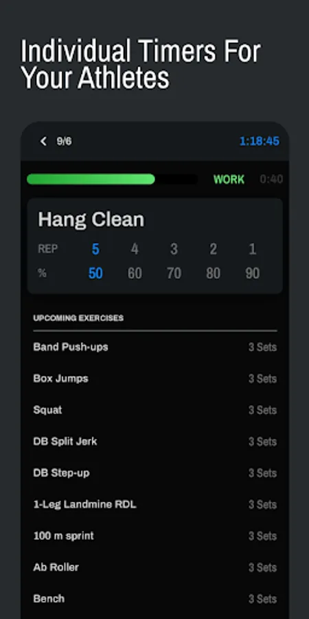 - Customizable Audio/Visual Timers that communicate your program to your athletes with maximum efficiency.